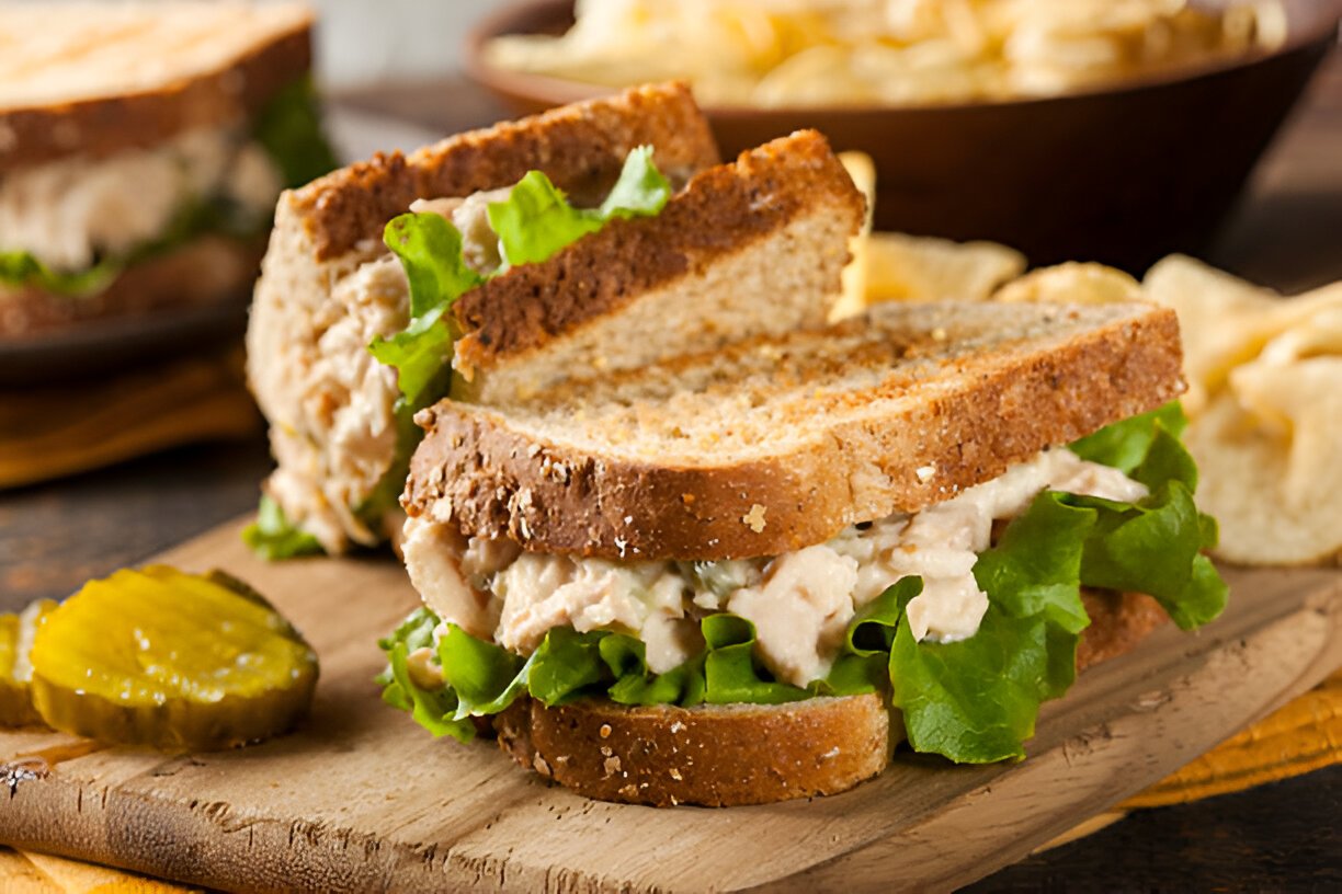 Grilled organic chicken salad with mixed greens, whole-grain bread or crackers, fresh fruit salad.